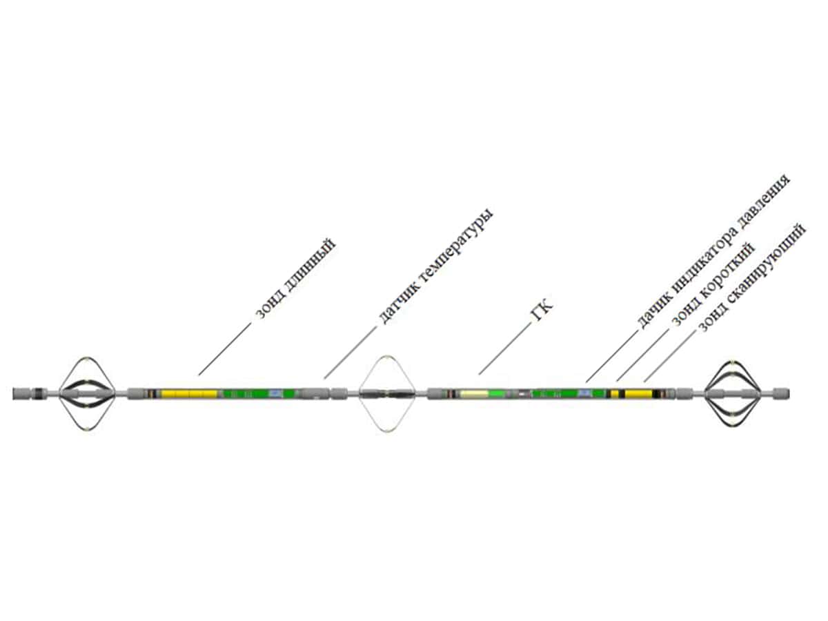предназначен для исследования газовых, нефтегазовых и других скважин, обсаженных трубами наружным диаметром не более 610 мм, через насосно-компрессорные трубы с внутренним диаметром не менее 52 мм, при суммарной толщине исследуемых труб до 50 мм, а также для работы в скважинных средах K1, K2 и K3, а именно, до 15% H2S и СO2 по объёму каждого.