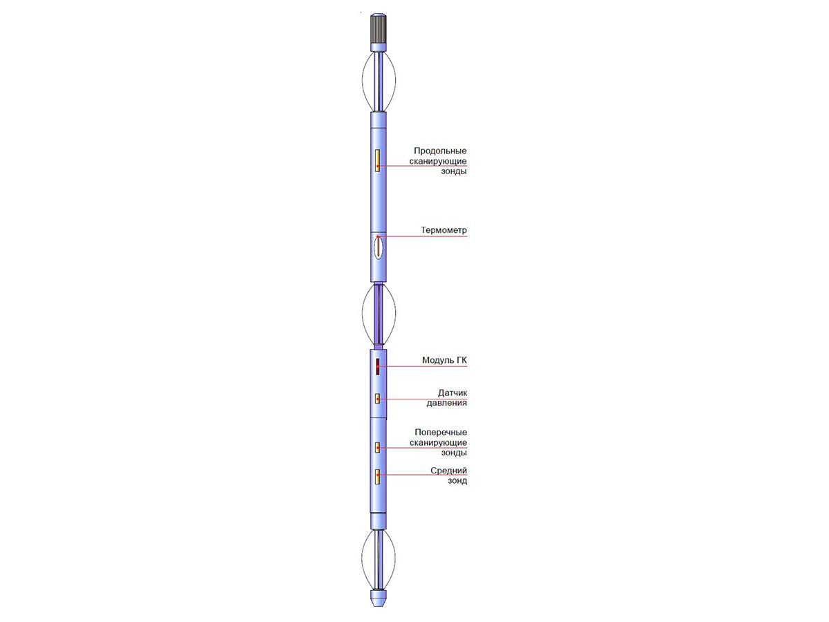 предназначен для исследования газовых, нефтегазовых и других скважин, обсаженных трубами наружным диаметром не более 610 мм, через насосно-компрессорные трубы с внутренним диаметром не менее 52 мм, при суммарной толщине исследуемых труб до 50 мм, а также для работы в скважинных средах K1, K2 и K3, а именно, до 15% H2S и СO2 по объёму каждого.